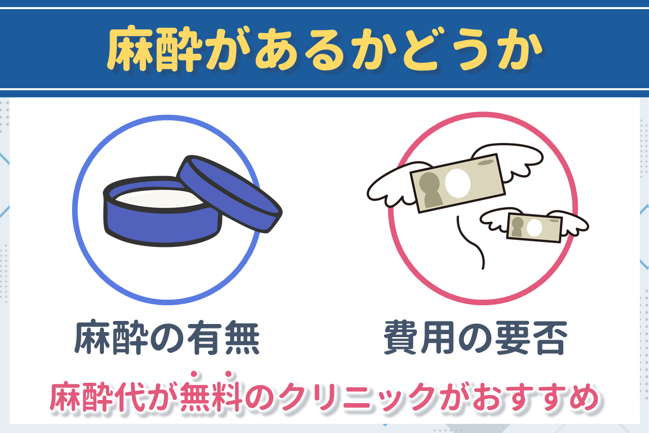しかし、中には麻酔がない場合もあるので、麻酔の有無についてはしっかりと確認しておきましょう。