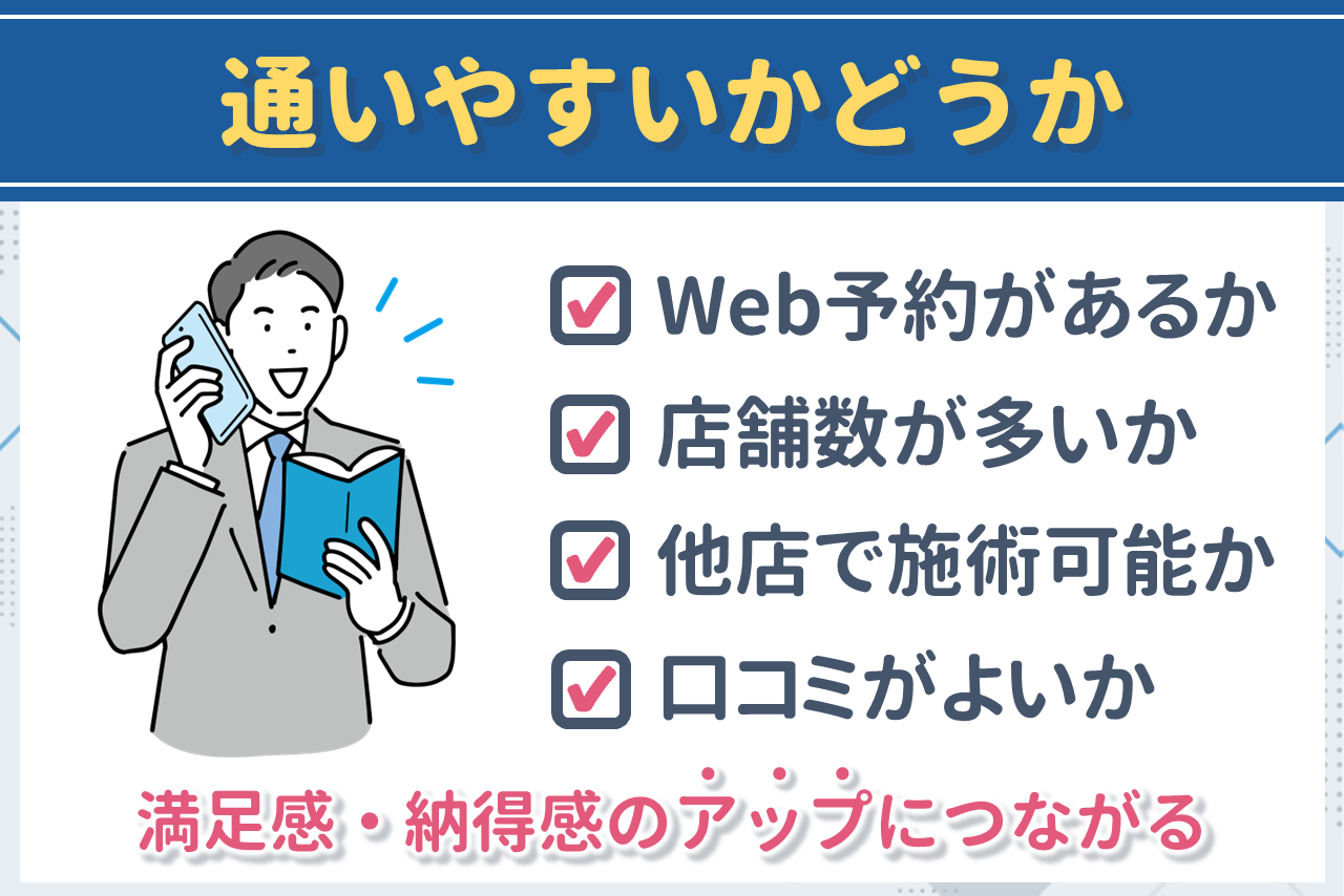 メンズ医療脱毛のクリニックを選ぶときは通いやすさも重視しましょう。