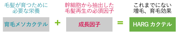 もくじ Toggle薄毛治療についてAdeBのお得な薄毛治療プランが誕生しました(2024年〜)薄毛治療のご予約はこちらからHARG⁺療法とはHARG⁺療法はこんな方にオススメHARG⁺療法の流れについて【HARG⁺療法の痛みについて】【HARG⁺療法の効果について】【治療の間隔について】【HARG⁺療法の費用について】HARG療法症例症例写真①症例写真②症例写真③症例写真④症例写真⑤症例写真⑥症例①〜⑥について【自宅でのヘアケアについて】HARG療法は、毛周期サイクルを正常に戻していきます。自宅でのヘアケア詳細に関してスカルプ育毛エッセンス「MOFU23」PREMIUMとは薄毛治療のご予約はこちらから 薄毛治療について 薄毛ケアは気になる部分だけでは不十分です。脱毛や薄毛となっている部分はあくまで最も見える化されている「氷山の一角」なので頭皮全体のケアを行うことが大切です。 当院では患者様の症状に合わせて治療をご提案しています。 ・内服・HARG⁺療法 各治療について詳しくご説明していきます。 AdeBのお得な薄毛治療プランが誕生しました(2024年〜) レディース薄毛治療プラン プラン名 価格 <お家で薄毛予防> 内容:内服 1ヶ月あたりの料金 初回¥6,200通常¥9,200 3ヶ月まとめ買い料金(10%OFF) ¥24,840 <お家で発毛プラン> 内容:内服+育毛エッセンス 1ヶ月あたりの料金 初回¥15,000通常¥18,000 3ヶ月まとめ買い料金(10%OFF) ¥48,600 <発毛促進プラン> 内容:HARG療法1回+内服+育毛エッセンス 1ヶ月あたりの料金 初回¥105,200通常¥108,200 3ヶ月まとめ買い料金(10%OFF) ¥293,760 メンズ薄毛治療プラン プラン名 価格 <お家で薄毛予防> 内容:内服 1ヶ月あたりの料金 初回¥1,800通常¥4,800 3ヶ月まとめ買い料金(10%OFF) ¥12,960 <お家で発毛プラン> 内容:内服+育毛エッセンス 1ヶ月あたりの料金 初回¥10,600通常¥13,600 3ヶ月まとめ買い料金(10%OFF) ¥36,720 <発毛促進プラン> 内容:HARG療法1回+内服+育毛エッセンス 1ヶ月あたりの料金 初回¥100,800通常¥103,800 3ヶ月まとめ買い料金(10%OFF) ¥280,260 薄毛治療のご予約はこちらから HARG⁺療法とは HARG⁺療法とは、頭皮に直接薬剤を注入し育毛・増毛を促す毛髪再生治療のことです。これまでは、薄毛治療として薬物療法やメソセラピー、自毛植毛などが行われていましたが、近年HARG⁺療法が開発されました。当院では、高純化エクソソーム製剤(ASCE+HRLV)を使用しています。高純化エクソソーム製剤(ASCE+HRLV)は、毛髪用ビタミンなど29種、成長因子10種に加えて、毛髪に最適な成長因子をプラスした毛髪再生治療用のエクソソーム製剤です。さまざまな薄毛要因をブロックし、薄毛の進行を抑制して発毛を促進・持続させます。男女問わず作用が発揮されます。 HARG⁺療法はこんな方にオススメ ・生え際の薄毛が気になる方・髪の分け目が気になる方・女性型脱毛症でお悩みの方・頭皮が乾燥しやすい方・フケが出やすい方・髪の毛の抜け毛が多い方・濡れると地肌が目立つ方 HARG⁺療法の流れについて ①診察②写真撮影③施術※ご希望の方は笑気麻酔が使用可能です。(料金別途1回3,300円)④お会計 【HARG⁺療法の痛みについて】 針を直接頭皮に刺し薬剤を注入するため、針を刺す痛みが生じます。※希望の方は、笑気麻酔を使用することが可能です。(別途で3,300円になります。) 【HARG⁺療法の効果について】 【治療1〜3回目】頭皮の環境を整える期間になります。実感できる変化としては・髪質の変化・抜け毛の減少があります。 【治療4〜6回目】細胞の活性が高まる期間になります。実感できる変化としては・細く柔らかい産毛の発毛が見られる・毛量の変化を実感があります。 【1クール終了3〜6ヵ月】・治療終了後も細胞の活性は続きます。引き続き発毛が見られます。 【治療の間隔について】 HARG⁺療法は、毛周期に合わせ「3〜4週間ごとに1回」頭皮に薬剤を注入します。効果の現れには個人差があります。当院では通常、6回の治療を1クールとしています。 【HARG⁺療法の費用について】 HARG⁺療法は自費診療となります。詳細は料金表をご確認ください。 HARG療法症例 症例写真① 症例写真② 症例写真③ 症例写真④ 症例写真⑤ 症例写真⑥ 症例①〜⑥について 治療内容 HARG治療副反応赤みや痒み、発疹などの副反応が出る場合があります。 【自宅でのヘアケアについて】 HARG⁺療法の効果を最大限に発揮するためには、自宅でのケアが大切になってきます。当院では自宅でのケア方法の一つとして、育毛エッセンス「MOFU23(PREMIUM)」をオススメしています。 HARG療法は、毛周期サイクルを正常に戻していきます。 毛髪の成長において、毛根血流の増加および毛母細胞への栄養分の取り込みが毛質改善に関連していると考えられています。そのため従来はメソカクテル(血管拡張剤、ビタミンB、コエンザイムQ10などを含む製剤)と呼ばれる薬剤を用いた「メソセラピー」による育毛治療を行ってきました。 HARG療法は、再生医療の「幹細胞」に着目し、毛髪の再生をかなえることができるようになりました。 自宅でのヘアケア詳細に関して 生活